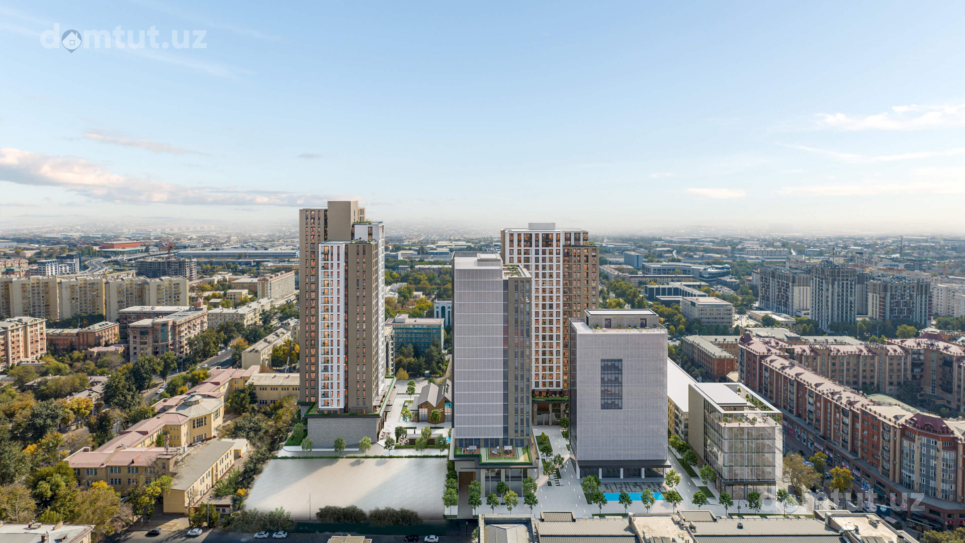 Объект расположен в самом сердце столице, в развитом и перспективном Мирабадском районе. Удобная транспортная доступность, развитая инфраструктура и прекрасный вид на город лишь малая часть преимуществ. ОН состоит из двух 26-этажных корпусов. Сдача запланирована на 2025 год, но продажи жилья уже начались.